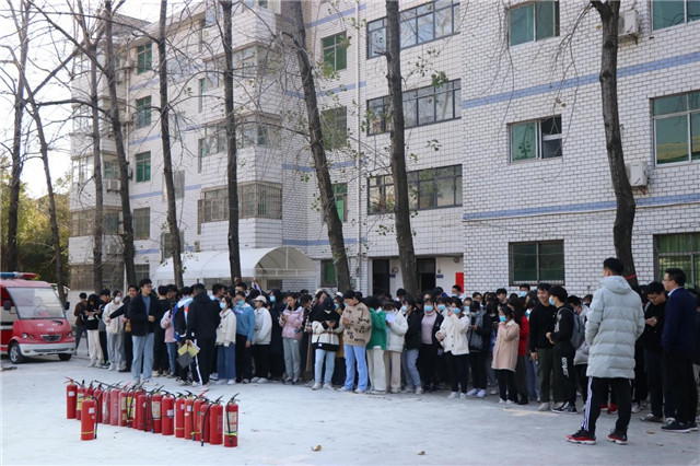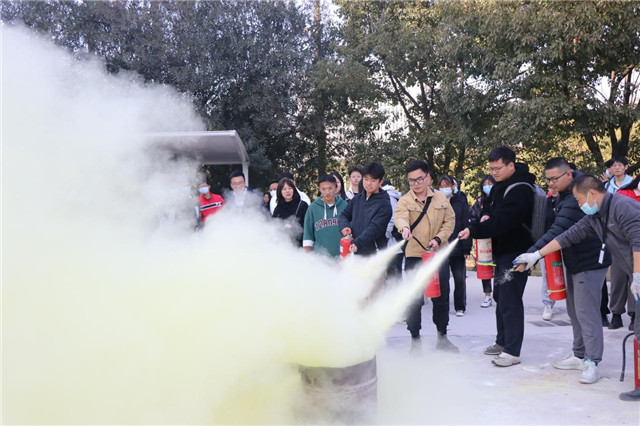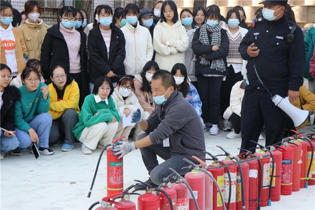 12月2日,学院组织全体2021级新生和各年级学生代表开展消防演练,邀请学校保卫处老师为同学们介绍常见火灾类型及防火、灭火知识,并现场讲解和示范灭火器、灭火毯的使用方法。在认真学习和观摩后,同学们亲自体验了使用消防器材灭火的过程,面对熊熊燃烧的大火,同学们表现积极且勇敢,按照示范步骤使用灭火器、灭火毯等工具将大火扑灭。实操过程中,保卫处老师针对具体操作细节进行了详细指导。