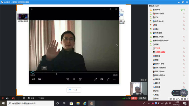 疫情期间,他通过电话、QQ、微信等多种形式加强与教研室老师们的联系,相互鼓励、支持、关怀。通过“云办公”“云学习”等多种形式共同学习探讨疫情防控知识,按照“停课不停学”要求,组织协助教研室老师开展网上教学,以“停课不停学、精心在施教”为题,及时总结宣传教研室老师网上授课的经验做法。