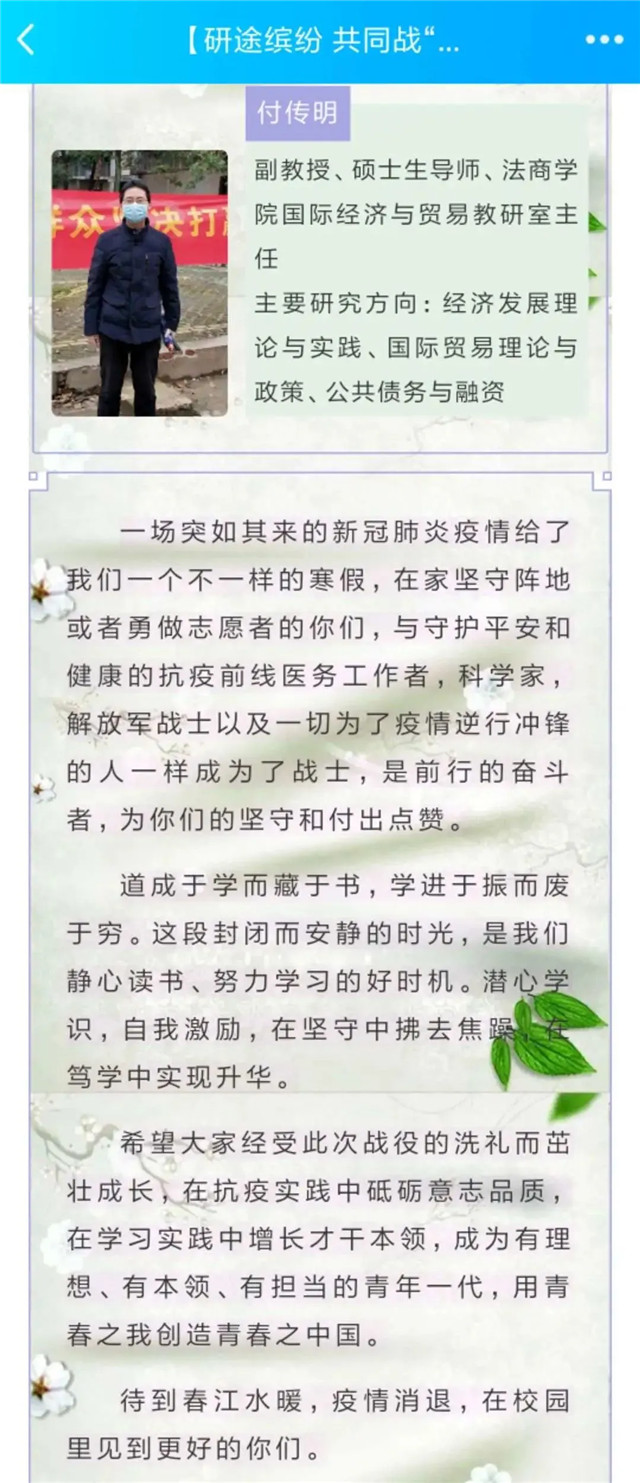 党旗飘扬 | 法商学院付传明:践行初心使命,在抗疫中展现共产党人的政治本色