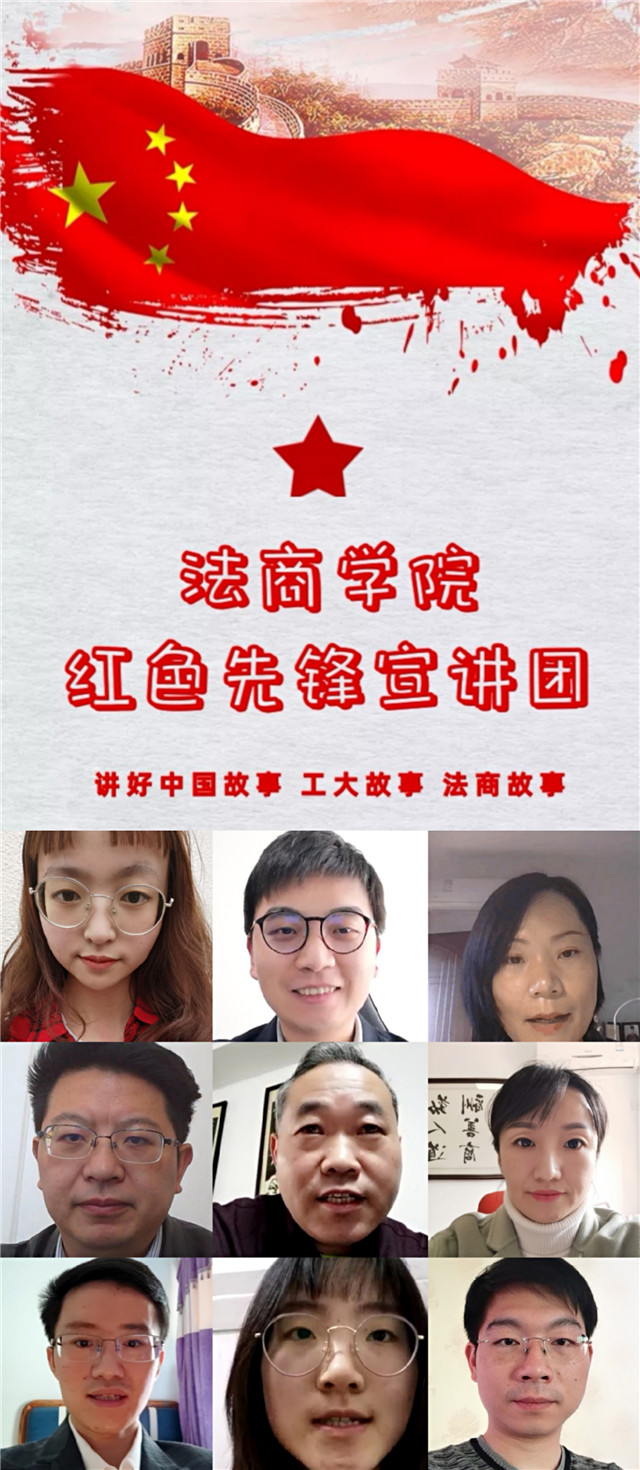 法商学院“红色先锋宣讲团”经过近一个月的筹备时间现已正式“上线”,宣讲团由学院领导班子、教师和学生党员代表、学生干部和具有创新精神的学生组成,设立“红色先锋宣讲团”社会奖助金。通过开展党的十九届四中全会精神宣讲、时事政策宣讲、普法宣讲,开展学业帮扶、红色寻访、实践调研、志愿服务等活动,着力讲好中国故事、工大故事、法商故事,大力弘扬新时代爱国主义精神、生动彰显中国特色社会主义制度优势、持续奏响社会主义核心价值主旋律,全面提升学生科学素养和人文情怀、不断坚定师生爱国力行的使命责任。
