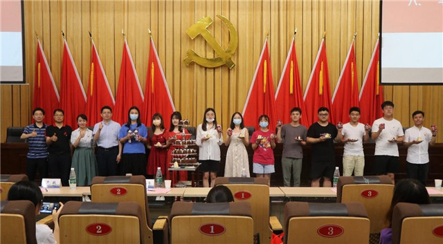 重温入党誓词,主题诗朗诵,美好祝愿献给党。活动现场,全体参会人员一起重温了入党誓词,毕业生党员代表范伟献上主题诗朗诵《百年初心,您从南湖走来》,以特别的方式表达对中国共产党百年华诞的美好祝愿。
