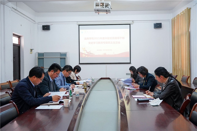 (本网讯 王祥礼)3月10日下午,法商学院在学院311党员活动室召开2021年度中层党员领导干部党史学习教育专题民主生活会。学校党史学习教育第三指导督查组组长、校党委副书记郑丹凤出席指导,学院领导班子全体成员参加会议,党务干事列席会议。会议由学院党委书记杨克平主持。