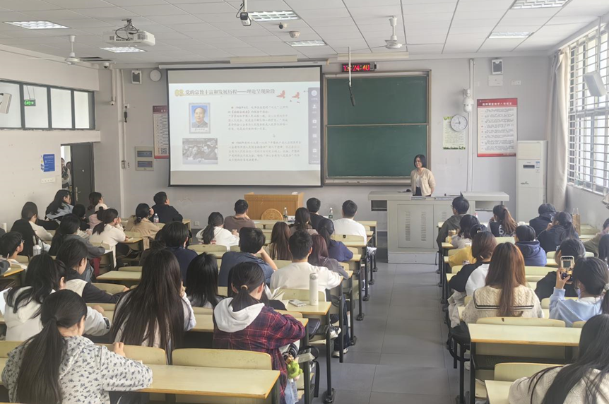开班仪式在全体学员共唱《国际歌》中落下帷幕。开班仪式结束后,学院党委书记陈朝娟从“什么是党的宗旨、党的宗旨确立依据、党的宗旨地位及其作用、新时期如何坚持党的宗旨、新时代大学生如何践行党的宗旨”等五个方面,为第74期入党积极分子讲授“中国共产党的宗旨”主题党课。